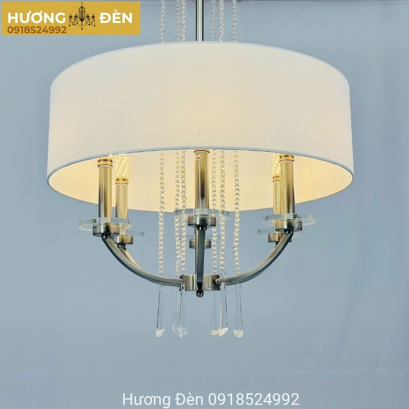 Đèn chùm tân cổ điển chao vải kết hợp pha lê trang trí phòng khách DC344T6 là mẫu đèn chùm cao cấp nổi bật với kiểu dáng thanh lịch, ánh sáng dịu nhẹ và chi tiết pha lê tinh xảo. Sản phẩm phù hợp cho nhiều không gian như phòng khách, bàn ăn, sảnh lớn hay nhà hàng, khách sạn.
