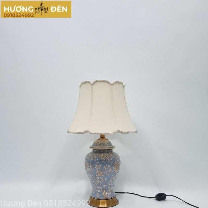 Đèn bàn DB85 được chế tác từ gốm sứ cao cấp với bề mặt hoàn thiện tinh tế, tạo cảm giác sang trọng và bền bỉ theo thời gian. Phần chao đèn bằng vải giúp ánh sáng khuếch tán mềm mại, tạo không gian thư giãn lý tưởng cho phòng ngủ. Kiểu dáng cổ điển kết hợp phong cách vintage mang lại vẻ đẹp thanh lịch, phù hợp với nhiều phong cách nội thất khác nhau từ tân cổ điển đến tối giản hiện đại.
