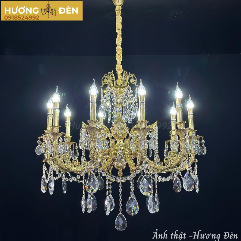 Đèn chùm luôn là điểm nhấn trung tâm giúp nâng tầm không gian nội thất. Mẫu Đèn Chùm Đồng Nến D850H1050 – E1410 mang phong cách cổ điển sang trọng, được chế tác từ đồng nguyên chất, thiết kế tinh xảo từng chi tiết, phù hợp cho những không gian đẳng cấp như biệt thự, sảnh khách sạn hay phòng thờ.