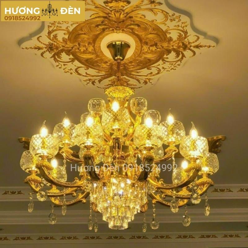 Đây là mẫu đèn chùm thiết kế theo phong cách châu Âu cổ điển kết hợp hiện đại, với cấu trúc ấn tượng gồm 15 bóng E14 cùng 5 bóng LED G4 ánh sáng dịu nhẹ, kết hợp lớp pha lê cao cấp phản chiếu ánh sáng lấp lánh, giúp không gian thêm phần lộng lẫy.