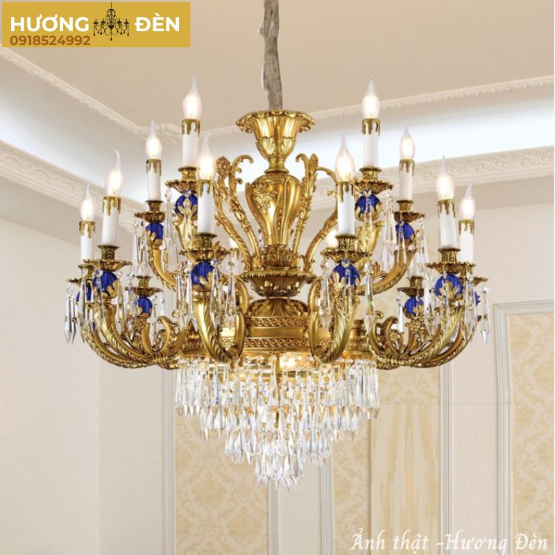 Trong thiết kế nội thất cao cấp, đèn chùm không chỉ đóng vai trò chiếu sáng mà còn là điểm nhấn thể hiện gu thẩm mỹ và đẳng cấp của gia chủ. Đèn chùm đồng nến pha lê K9 Ø950*H1500 là sự kết hợp hoàn hảo giữa phong cách cổ điển châu Âu và chất liệu hiện đại, mang đến vẻ đẹp lộng lẫy, tinh tế cho mọi không gian.