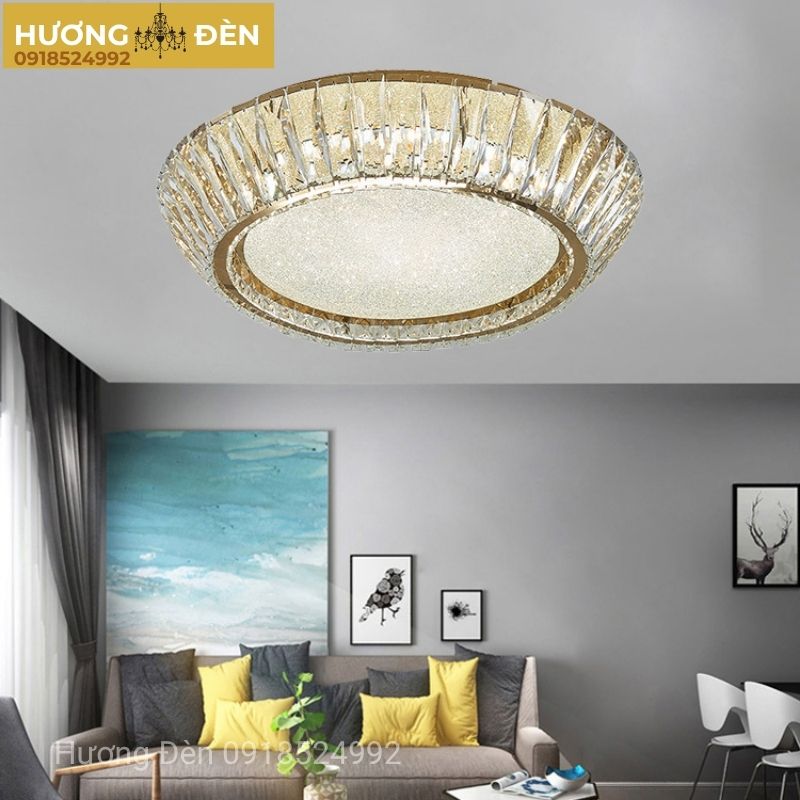 Chiếc đèn được chế tác từ pha lê tinh khiết phản chiếu ánh sáng lấp lánh và khung kim loại chắc chắn phủ màu đồng vàng sang trọng. Nhờ ứng dụng công nghệ LED hiện đại với 3 chế độ ánh sáng (trắng, vàng, trung tính), sản phẩm giúp bạn dễ dàng điều chỉnh không gian theo từng nhu cầu sử dụng. Đây là dòng Đèn Ốp Trần được khách hàng ưa chuộng nhất tại Hương Đèn bởi sự kết hợp hài hòa giữa thiết kế thẩm mỹ, chất lượng vượt trội và mức giá cạnh tranh.