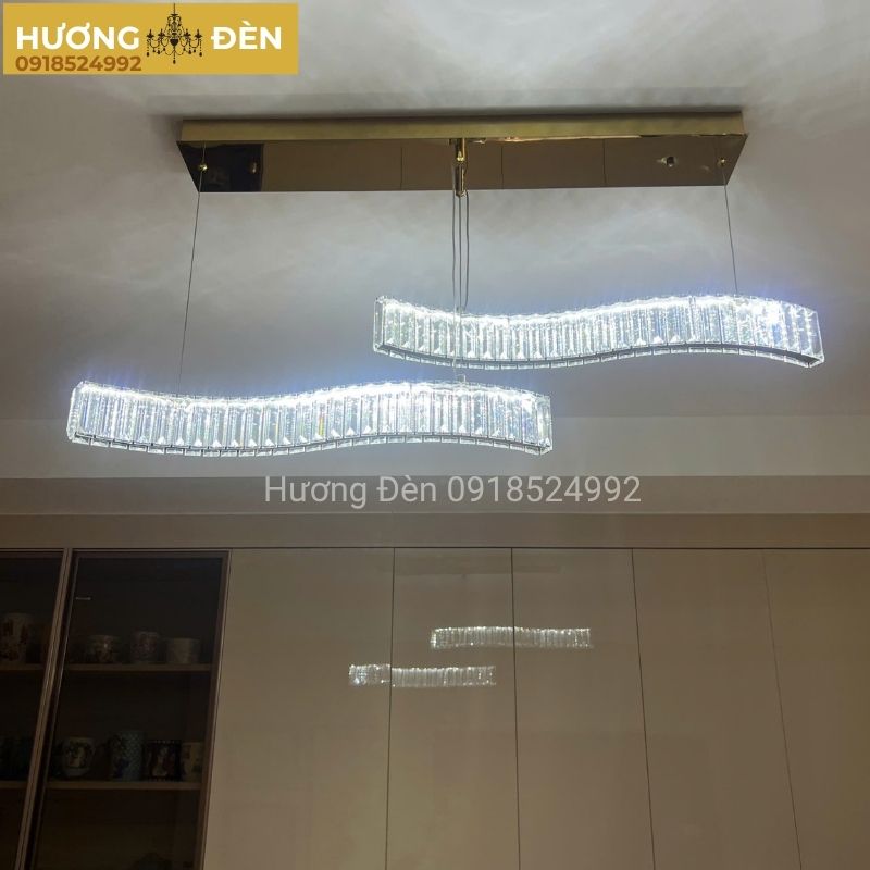 Đèn thả THD7047N2 sở hữu thiết kế thanh dài hiện đại, phù hợp lắp đặt trên bàn ăn hoặc đảo bếp. Các chi tiết pha lê trắng cao cấp được gia công tinh xảo giúp ánh sáng phản chiếu lung linh, tạo điểm nhấn nổi bật cho không gian. Chất liệu pha lê bền đẹp, kết hợp cấu trúc chắc chắn giúp đèn thả giữ được độ thẩm mỹ lâu dài. Thiết kế tối giản nhưng sang trọng giúp sản phẩm dễ dàng kết hợp với nhiều phong cách nội thất từ hiện đại đến cao cấp.
