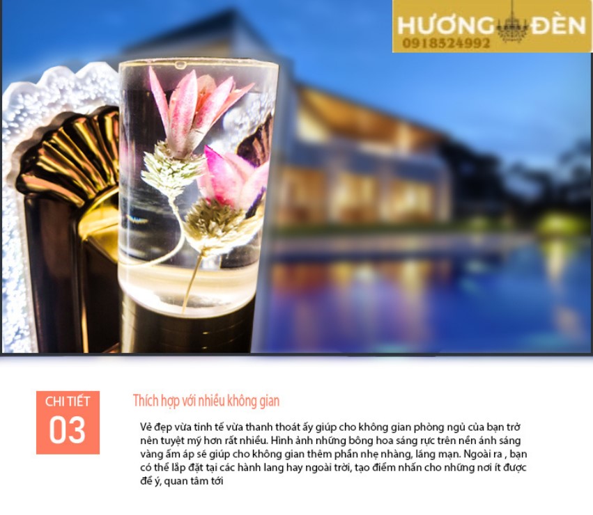 Vẻ đẹp vừa tinh tế vừa thanh thoát ấy giúp cho không gian phòng ngủ của bạn trở nên tuyệt mỹ hơn rất nhiều. Đặc biệt đối với phòng ngủ của phái yếu, hình ảnh bông hoa đẹp nhẹ nhàng giúp cho căn phòng của bạn ấm áp và nữ tính hơn rất nhiều. Đèn vừa giúp tăng thêm tính thẩm mỹ, vừa thể hiện cá tính của bạn.